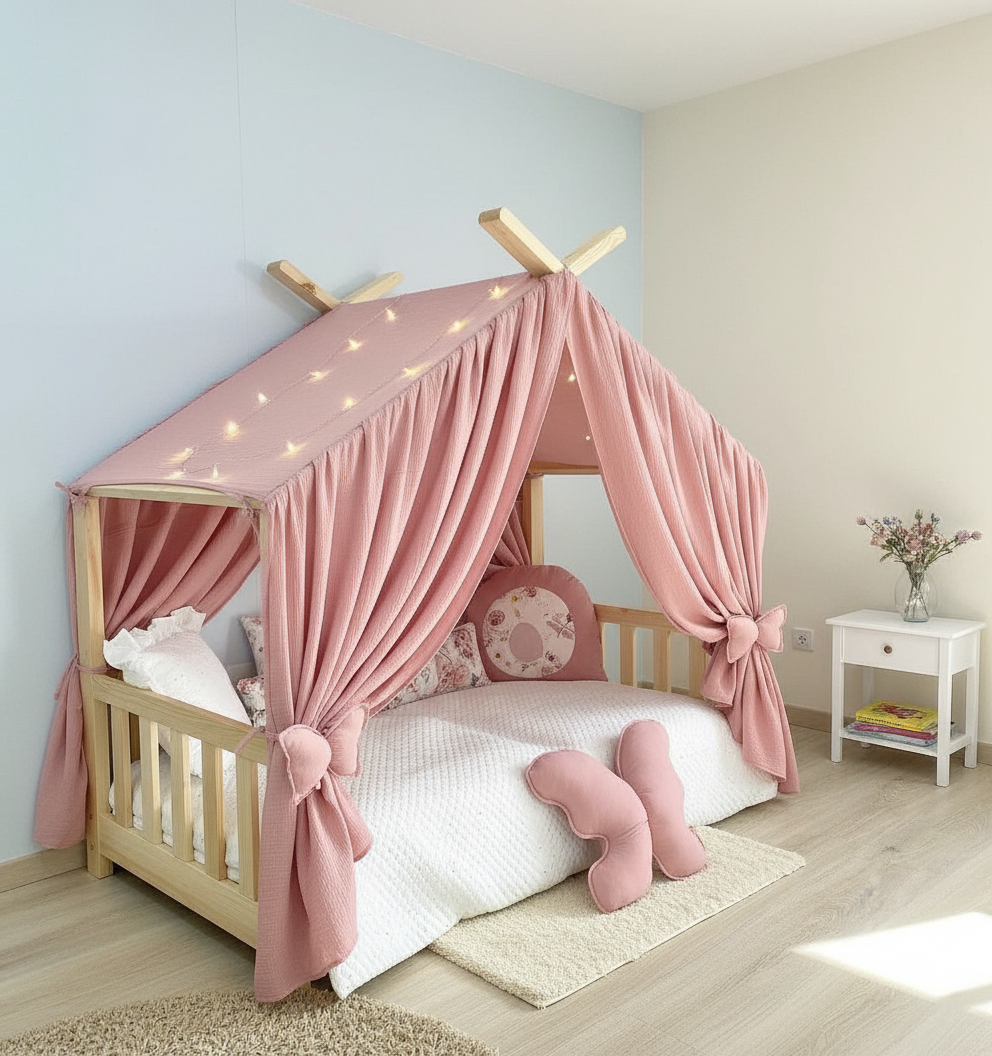 Create a magical corner for play and rest with our handmade fabric teepees. Crafted from soft natural materials, they offer a cozy space for imagination, reading, and everyday childhood moments.